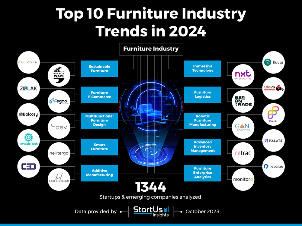How is the furniture industry leveraging technology to improve efficiency and revenue? This data-driven industry research focuses on the top furniture industry trends in 2024 based on the analysis of 1300+ companies. These trends include sustainable furniture, multifunctional design, robotic manufacturing & more.