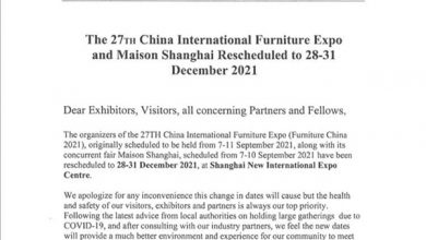 The 27th China International Furniture Expo and Maison Shanghai are rescheduled to 28-31 December 2021