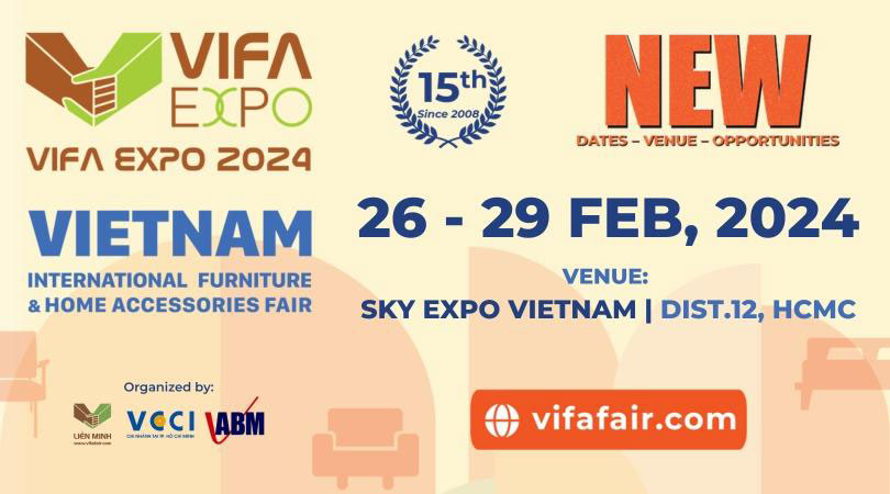 Continuing the success of the previous 14 editions of the fair with the trust and companionship of hundreds of leading Vietnamese and foreign export exhibitors, VIFA EXPO 2024, organized by Lien Minh Company, will take place on the new datesat a new venue. The show will be held from 26 – 29 February, 2024 at SKY EXPO VIETNAM, District 12, HCMC.