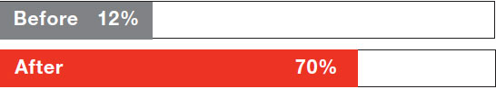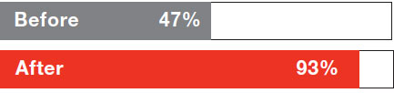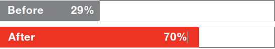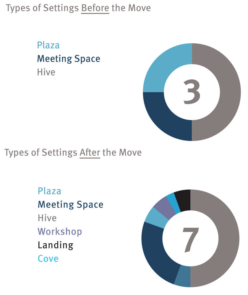 The employee survey shows that people are noticing this new level of efficiency. Only 29 percent of people thought their old office helped them work productively, but now 70 percent think the new space is helping them do their jobs faster and better.